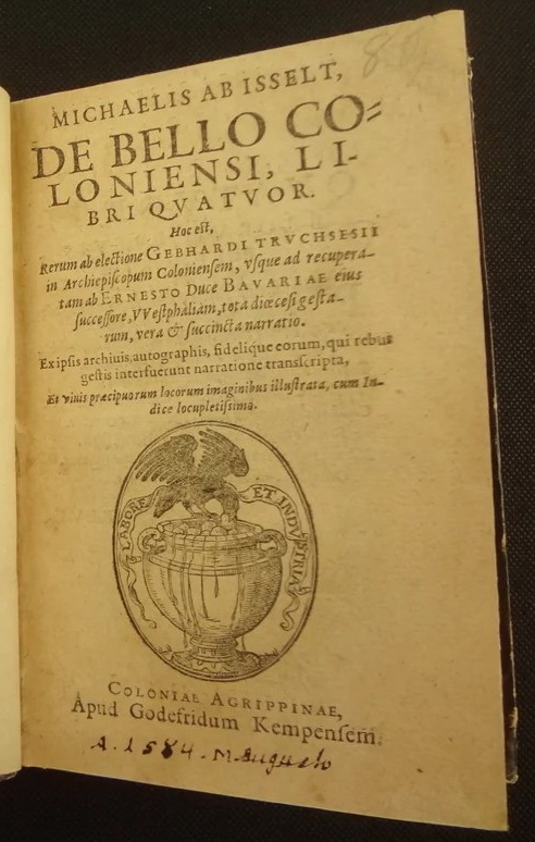 [4] Michael von Isselt, 1584, in: Arnold Meshofen und Michael von Isselt, Erstausgabe in deutscher Übersetzung, Religionsgeschichte der Cölnischen Kirche, unter dem Abfal der zweien Erzbischöfen und Churfürsten Herman Grafen von Wied und Gebhard Grafen von Truchses, Köln 1764, S.302 f.