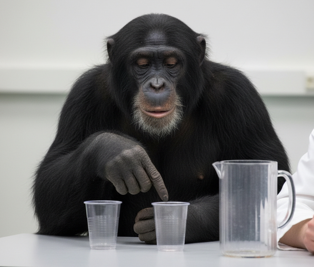 Der Affe Kanzi konnte sich in einem Experiment ausgezeichnet vorstellen, in einem geleerten Becher befände sich Saft, und durchschaute die Fiktion. Er wählte den leeren, durchsichtigen Saftbecher im Spiel, als ob der Becher voll wäre, im vollen Bewußtsein, daß der Saft nur eine Fiktion war.