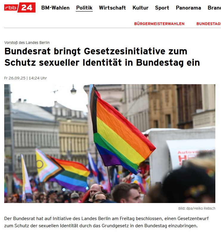 Was die linken Parteien 2019 nicht hatten durchsetzen können, wird zur Zeit unter anderem von den CDU-Linken Wüst, Günter und Wegener aufgegriffen und soll durch eine Bundesrats-Initiative durchgedrückt werden. Der öffentlich-rechtliche Sender rbb24 berichtet erwartungsgemäß wohlwollend: